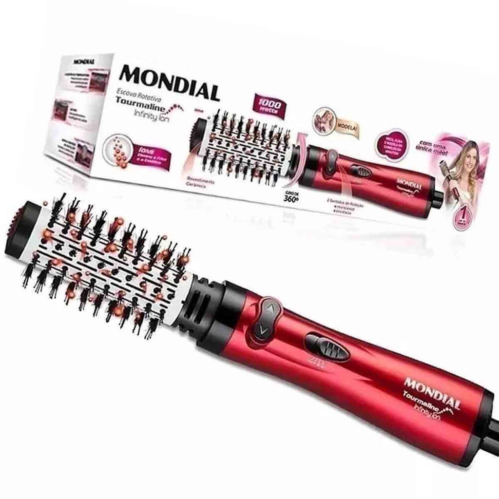 MOBILARELETRO HÁ MAIS DE 25 ANOS INOVANDO EM PRODUTOS Produto vitrine , já foi exposto na loja, e as caixas algumas vezes sofrem avarias. O produto é novo , 100% original , adquirido direto de fábrica, testado previamente antes de embalar para evitar transtornos. Possui garantia de 90 dias pelo vendedor ,com nota fiscal. Há 25 anos no mercado de eletrodomésticos, vendendo produtos que te auxiliam nas atividades do dia a dia, trazendo sofisticação e conforto para a sua casa, e qualidade de vida para você e sua família! Com a escova rotativa ER-03 da Mondial você vai fazer penteados lindos, com visual profissional sem sair de casa. Fácil de usar, essa escova vai deixar seus cabelos sempre arrumados sem abrir mão da praticidade. Indicado para todos os tipos de cabelos, ela seca, modela e dá brilho, basta deslizar a escova por todo o comprimento do cabelo modelando as pontas. Tem duplo sentido de rotação, dois ajustes de temperatura mais ar frio, ideal para finalizar o penteado, pois ajuda a diminuir o frizz. Leve agora a escova rotativa turmalina Infinity Ion e tenha o melhor da Mondial na sua casa. Especificações Técnicas Potência (W) 1500 W Cor: Preto e Vermelho Temperatura máxima ( graus C) 210 Comprimento do fio 180 cm Garantia 12 meses Voltagem: 220V Conteúdo da Embalagem - 1 Escova Rotativa - 1 Manual de Instruções - 1 Manual de Assistência Técnica Dimensões Altura:9,00 Centímetros Largura:39,00 Centímetros Profundidade:10,00 Centímetros Peso:300,00 Gramas